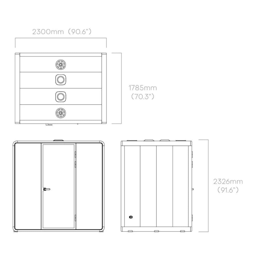 Width: 90.6″(ext.)/85.1″(int.) | 2300mm(ext.)/2162mm(int.)