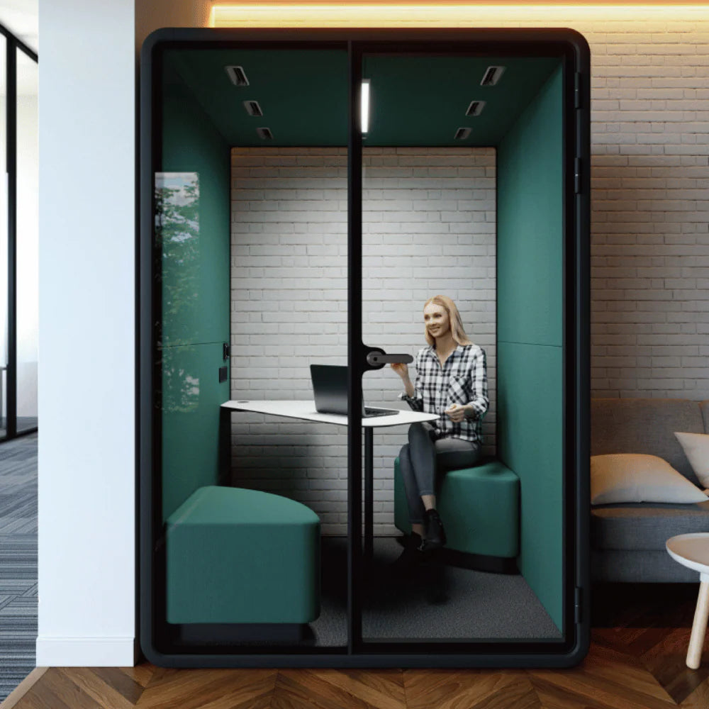Double-layer glass construction effectively blocks external noise for distraction-free workspaces.