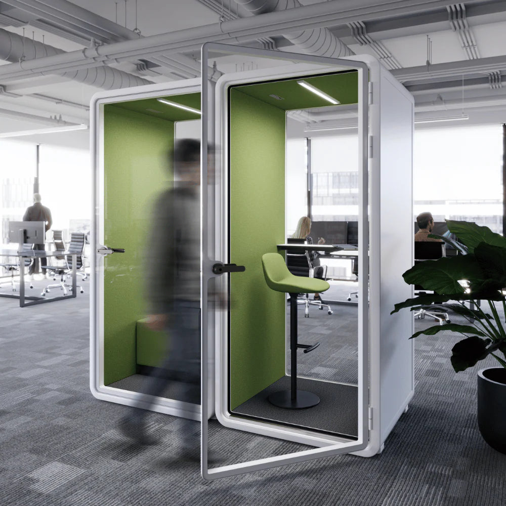 Double-layer glass construction effectively blocks external noise for distraction-free workspaces.